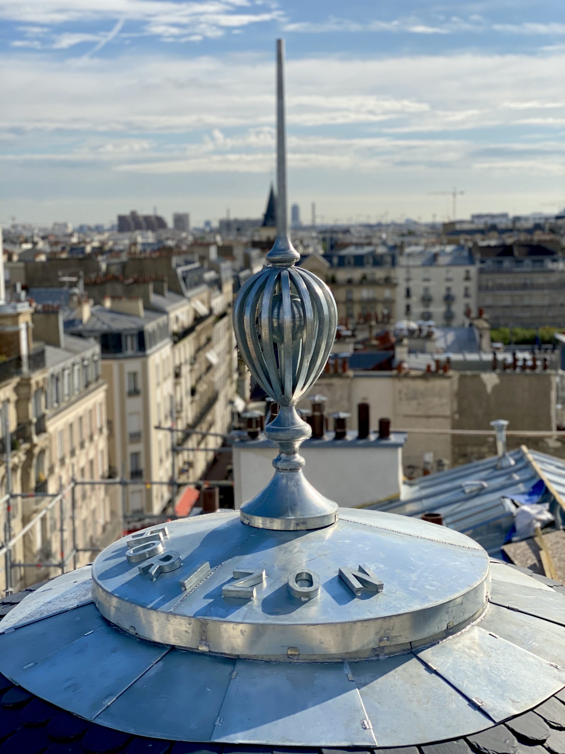 Le plus gros des travaux a constitué en la réfection de l’imposant dôme formant l’angle de l’immeuble. De longues semaines et un gros savoir-faire ont été nécessaires pour arriver à ce magnifique rendu. Un épi a été ajouté lors de ces travaux pour compléter l’esthétique de ce dôme.