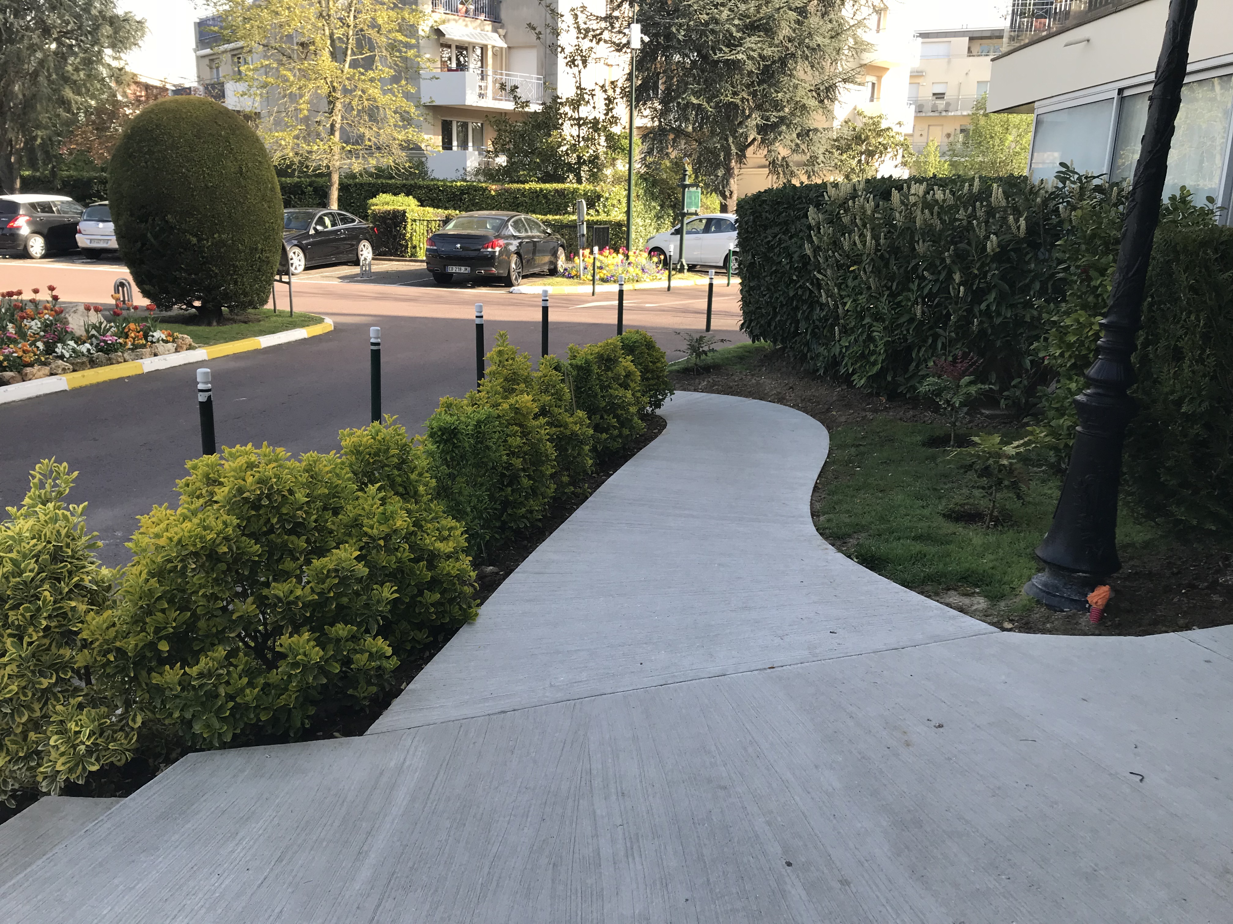 Profitant de la réfection complète des allées, les accès aux immeubles ont été améliorés : élargissement du passage, création de rampes d’accès, amélioration de la récupération des eaux de pluies, tout en respectant l’esthétisme des abords (végétalisation).